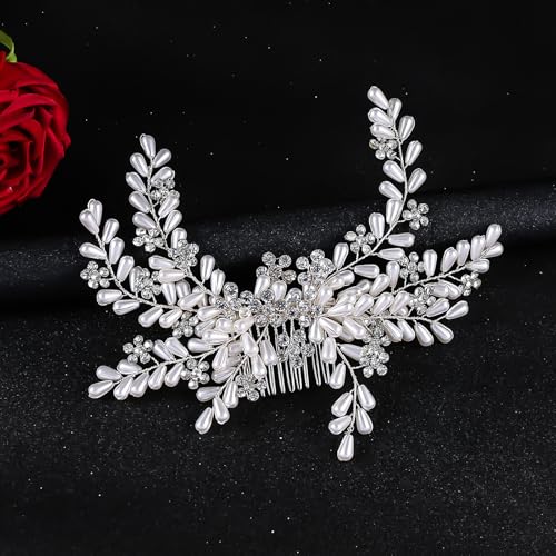 Pearl Bride Wedding Hair Comb Handmade Crystal Bridal Hair Pieces Sliver Hair Accessories for Brides