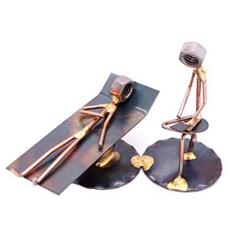 Mental health professionals are instrumental in helping countless numbers of people live better lives. Trained to help us through our darkest days, hours, and even minutes, our Psychiatrist figurine is a good way to show appreciation to the psychiatrist in your life! Great for student and seasoned professionals alike, our Psychiatrist figurine is crafted from nuts, brazing rods, washers, steel, and is great to use as office decor, a trophy for that special accomplishment, or to accompany business cards for a fun, eye-catching desk accessory. (The business cardholder may be purchased one by one.) Standing approximately 5″ wide by 3″ tall, the mental health professional in your life will enjoy having the sort of unique and individualized miniature statue to represent all of the hard work they do on a daily basis! All Rock Creek Metal Craft products are individually hand brazed for unique, artisan finishes right here in america; creating strong, durable, and long-lasting figures that are one of a kind. We offer all kinds of over 500 collectible metal sculptures, Every handmade, collectible, and thoughtfully crafted.