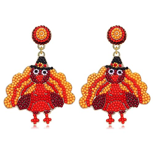 Thanksgiving Earrings Beaded Fall Earrings for Women, Handmade Pumpkin Turkey Maple Leaf Drop Dangle Earrings Thanksgiving Accessory Holiday Gifts