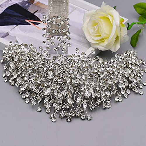 ULAPAN HP376 Silver Rhinestone Wedding Headpiece for Women Handmade Bridal Headband Hair Accessories