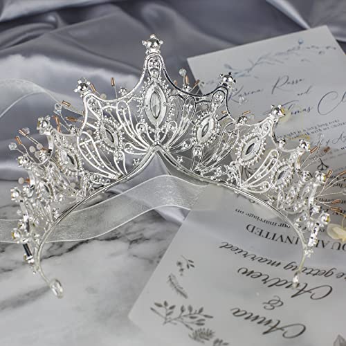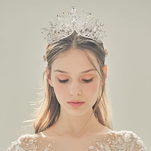Yolmina Baroque Queen Crown, Sliver Wedding Crown and Tiara for Bride Handmade Princess Crystal Rhinestone Headband Tiaras for Women, Fairy Hair Accessories for Wedding Halloween Party Music Festival