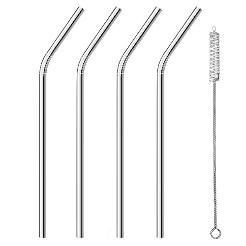 ALINK Stainless Steel Smoothie Straws, 9″ X 8mm Set of 4 with Cleaning Brush – Bent
