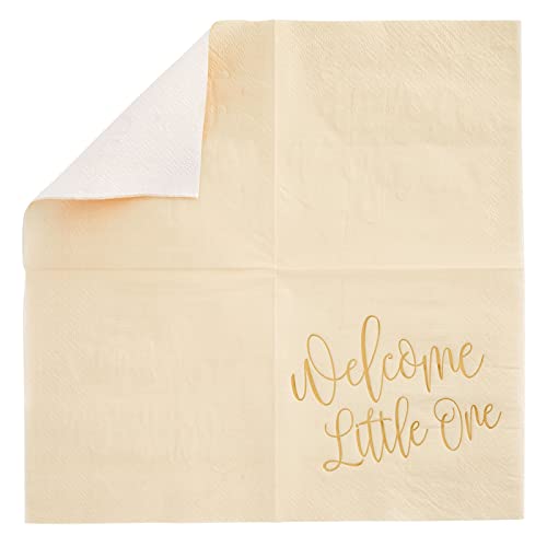 Charming Design: These light tan napkins feature ” Welcome Little One” in an elegant gold foil script; please note, they are not microwave safe