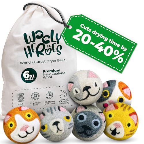 Meet Whimsicat & Friends: Brighten your laundry day with Whimsicat & Friends wool dryer balls! These cute dryer balls laundry reusable stars reduce drying time and of course soften clothes. Add fun and efficiency in your laundry routine with these adorable companions, perfect for making chores more enjoyable.