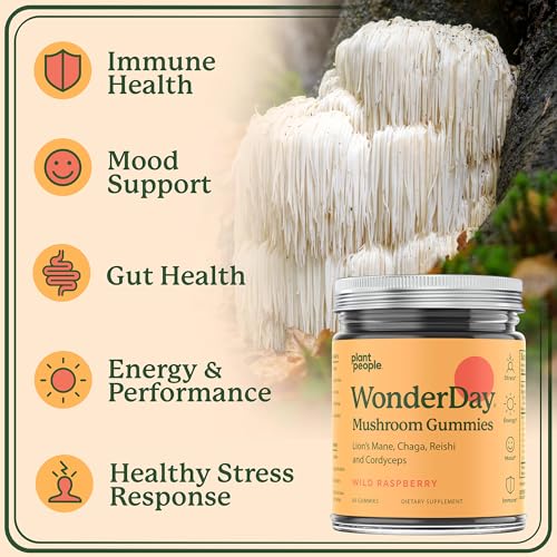 Specification: Plant People WonderDay Mushroom Gummies Daily Multi Support for Whole Body Balance, Mood, De-Stress, Energy, Immune and Gut Health, Vegan, Non-GMO, Eco-Friendly Jar (60 Count)