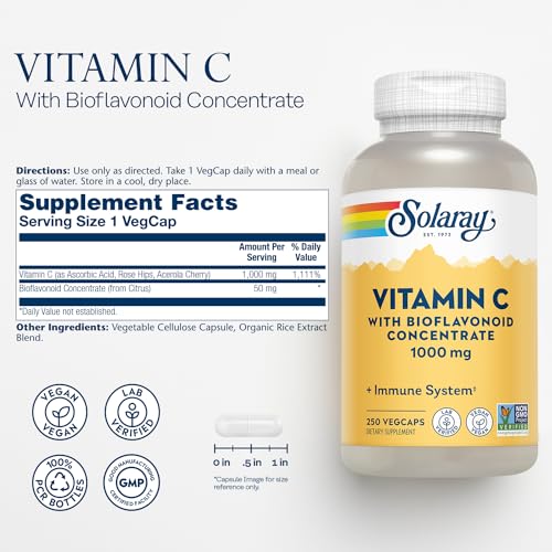 Specification: Solaray Vitamin C w/Rose HIPS, Acerola & Bioflavonoids, 1000mg, Supports Immune Function & Healthier Skin, Hair, Nails, Non-GMO, Vegan, 250 CT