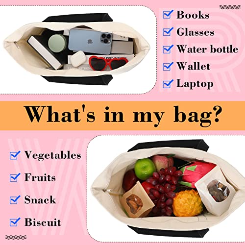 Intimate Design: the top of the cotton canvas totes is sealed with a zipper, which can prevent the items from slipping out and keep your items safely; As well as, there are 2 reinforced black webbing handles for simple hand carrying or shoulder carrying