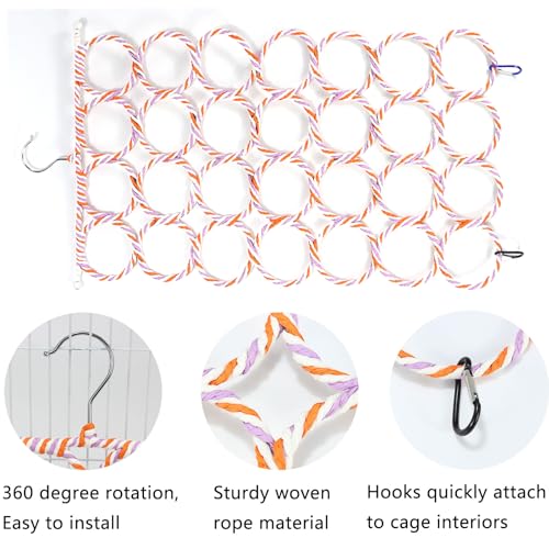 For Most Pets: This bird climbing rope net is for many small animals, such as rats, sugar glider, birds, parrots, parakeet, cockatiel, cockatoo, conure,mini maca and so on to stand, climb and play. It is good decoration and accessory for small animal cage