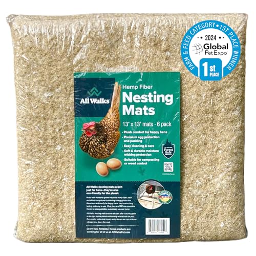 Specification: All Walks Chicken Nesting Material Mats – Sustainably Sourced & Biodegradable Hemp Nesting Pads for Chicken Coop – Safe and Soft Hen House for Laying Eggs – American Farms 13 x 13 (6 Pack)