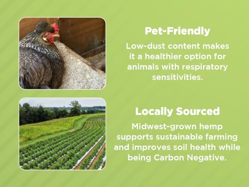Hemp Chicken and Animal Bedding 8 Lbs of Natural Ground Hurds – SUPER ABSORBENT- DUST FREE- for your CHICKENS, Horse, Rabbit, Reptile, Hamster, Cage Coop or CAT LITTER – USA Grown – Carbon Negative
