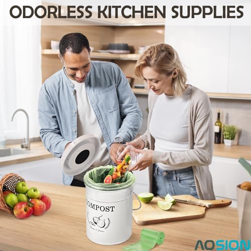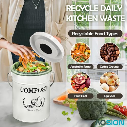 AOSION Compost Bin Kitchen Counter,Countertop Compost Bin with Lid,Indoor Kitchen Compost Bin,Composter Container,Compost Pail Food Waste Bin for Kitchen,1.0 Gallon,White