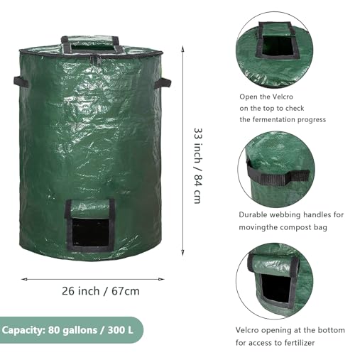 [Large Capacity]: Large 80 gallon pile more fertilizer. Don’t let your compost pile overflow – Our compost bags can hold up to 200 gallons of compost, grass clippings, leaves, and other yard waste to meet all of your home and garden waste management needs.