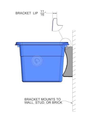 The EZ Bin Brac — this single bracket design works to hang a couple of bin types on stud or drywall with only 2 screws/anchors (included). Alternately, it may also be mounted to brick as shown above.