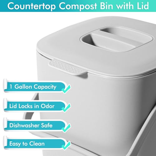 【COUNTERTOP COMPOST BIN】Our food waste bin for kitchen has a 1 gallon capacity, making it perfect for a household of 2~3. These countertop compost bins are small enough to fit on your countertop for simple access even as cleaning or cooking, and they are able to also fit under the sink or in the refrigerator without taking up too much space.