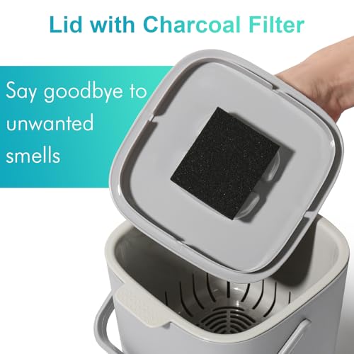 【KITCHEN COMPOST MAKE EASY】From food scraps to soil, this counter top compost bin for kitchen makes recycling food waste easier and more convenient. Perfect for indoor kitchen daily use, the food waste bin has handles for simple transport from indoor to outside composting.