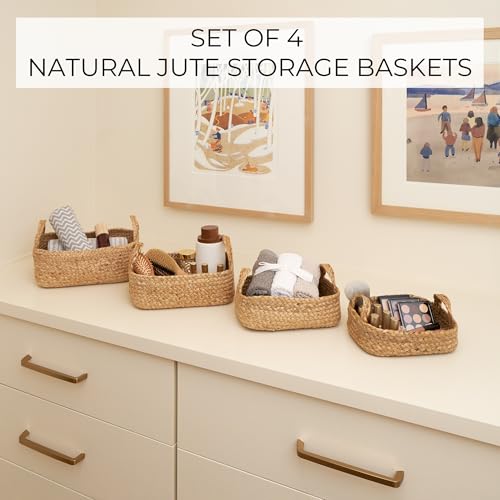 Beautiful Storage Basket Set of 4 – Natural Jute Rope Baskets for Shelves Are Perfect for Organizing Your Home – Quality Storage Bins Easily Fit With Any Nursery or Bedroom Decor
