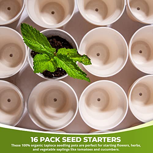 Americas 3.5″ Biodegradable Plant Pots (16 Pack): Eco-Friendly Seed Starter Kit with Tapioca Starch for Nutrient-Enriched Soil
