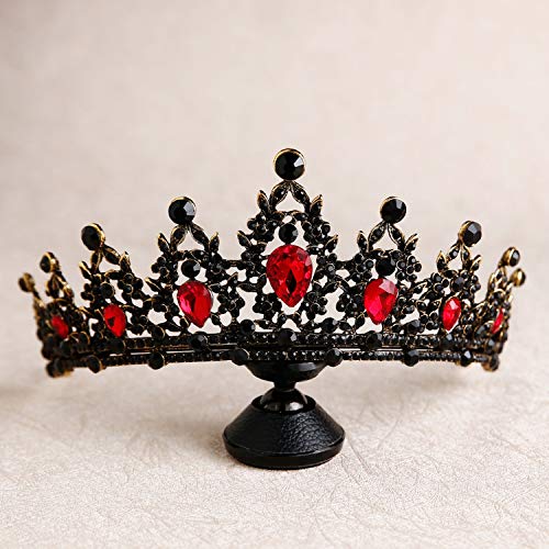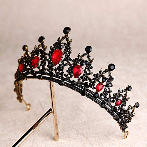 Specification: Baroque Black Red Green Crystal Heart Bridal Tiaras Crown Rhinestone Diadem Pageant Veil Tiara Headband Wedding Hair Accessories-Red