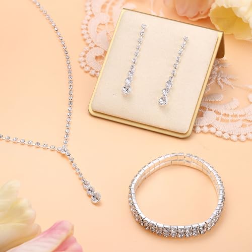 Specification: Jstyle Silver Bridal Wedding Jewelry Set Crystal Necklace Bracelet Dangle Earrings Set for Bride Bridesmaid Rhinestone Necklace Prom Costume Jewelry Set Accessories for Women