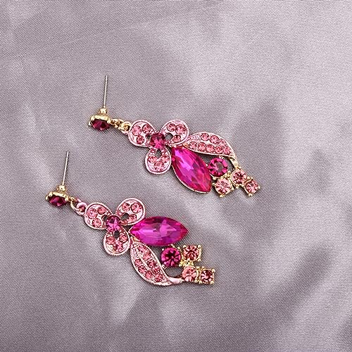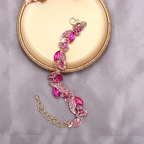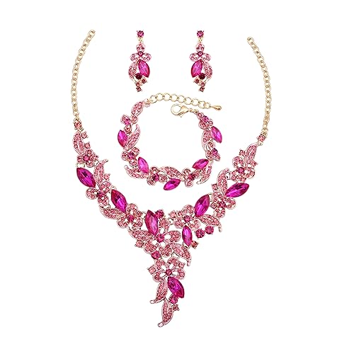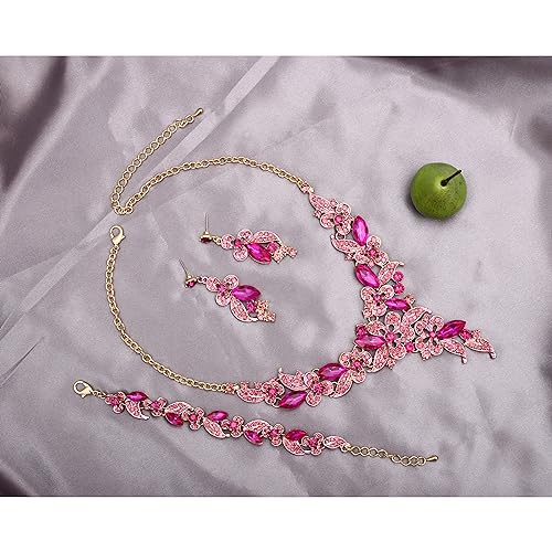 QLLYHLH Austrian Crystal Wedding Jewelry Set Flower Statement Necklace Dangle Earrings Link Bracelet Brides Bridesmaid Prom Costume Party Accessories for Woman