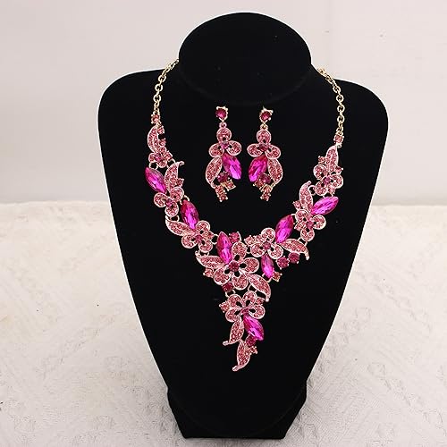 Specification: QLLYHLH Austrian Crystal Wedding Jewelry Set Flower Statement Necklace Dangle Earrings Link Bracelet Brides Bridesmaid Prom Costume Party Accessories for Woman