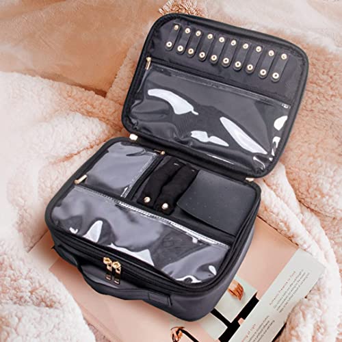 Specification: Tour with Nour Makeup Bag Vegan Leather Travel Makeup Case Portable Artist Cosmetic Bag, Cosmetics Case Organizer for Brushes Toiletry Jewelry Digital Accessories, Must have Travel Black Makeup Bag