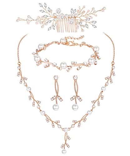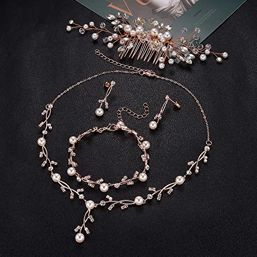 YADOCA Pearl Prom Jewelry Set For Women Pearl Rhinestone Crystal Drop Necklace Earring Bracelet Hair Pins Prom Bride Bridesmaid Wedding Bridal Jewelry Accessories Silver Gold Rose Gold