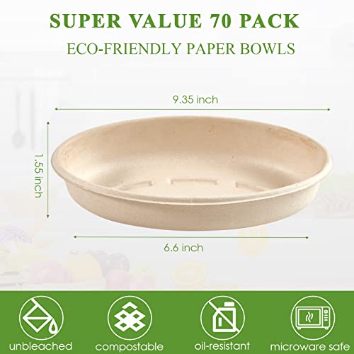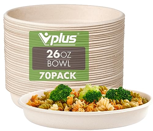 Vplus 70 Pack 26 OZ Paper Bowls, Disposable Compostable Bowls Bulk, Eco-friendly Bagasse Bowls, Heavy-duty Bowls Perfect for Milk Cereals, Snacks, Salads