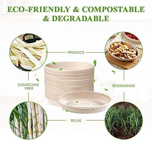 Good For Environment: Made from sustainably sourced sugarcane fibers, these 26 oz bowls are 100% biodegradable and suitable for composting for easy disposal, making these bowls good for the environment