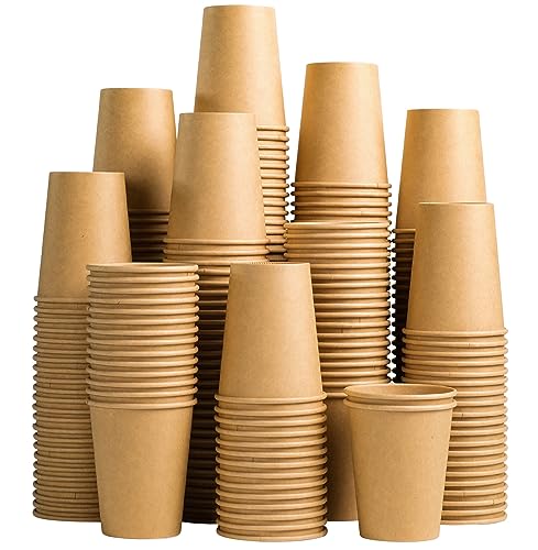 Lamosi 200 Pack 10 OZ Kraft Paper Cups, Brown Disposable Paper Coffee Cups, Biodegradable Unbleached Cups for Hot/Cold Beverage Party Home Office