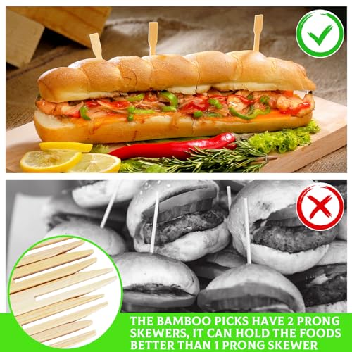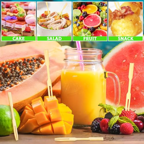 Disposable Wooden Appetizer Forks: The bamboo picks have 2 prong skewers, it can hold the foods better than 1 prong skewer, mini and practical, which can carry and store easily.