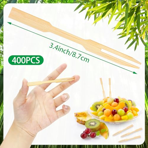 400 Pcs 3.4inch Bamboo Forks Disposable Wooden Appetizer Forks for Fruit, Snack, Desserts, etc