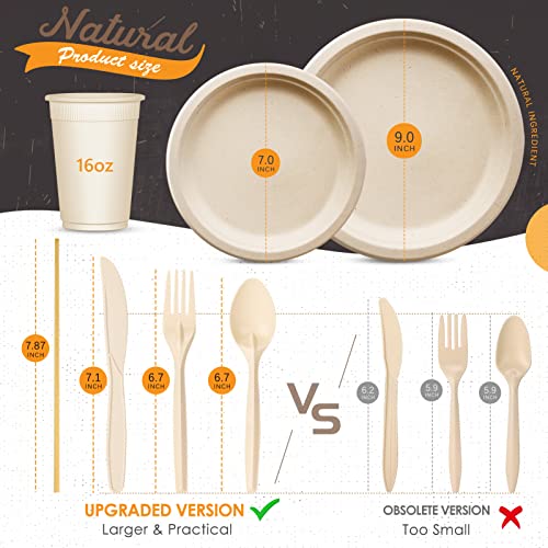 Gezond 350pcs Compostable Paper Plates Set Eco-friendly Heavy-duty Disposable Paper Plates Cutlery Includes Eco-friendly Plates, Forks, Knives, Spoons, Cups and Straws for Wedding Party, 50 Guests