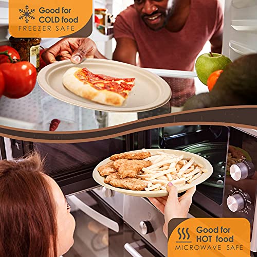 【Microwave and freezer safe ] This durable and heavy-duty paper plate can be heated resistant up to 248°F without deforming as well as oil-resistant and leakproof. The cutlery can cut through steak, vegetables, fruits and so on