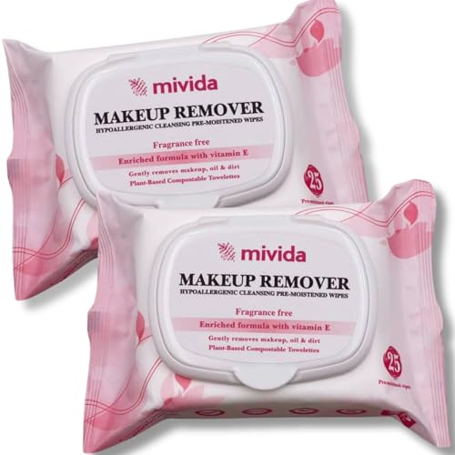 Specification: mivida Hypoallergenic Makeup Remover Wipes 2 Pack of 25 Count | Biodegradable Facial Cleansing Make up Remover Face Wipes with Vitamin E | Fragrance Free, Alcohol Free, Plant Based 50 Count wipes