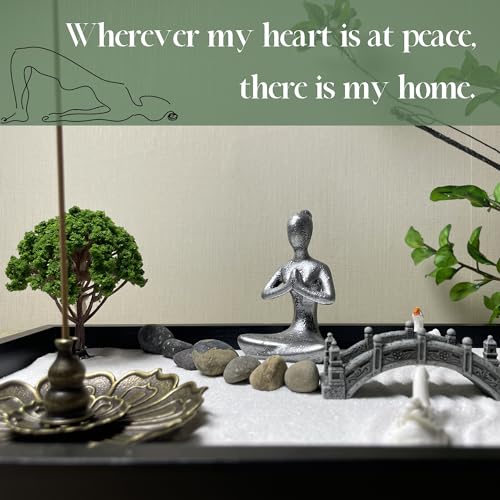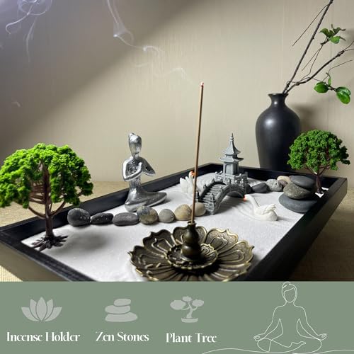 Mini Zen Garden Kit for Office Desk and Home Table, Meditation Tool, Gift for Wife, Mother, Girl Friend, Grandmother – Include Artificial Tree, Buddha, Pagoda, Lamp Niche… (Zen Garden-1)