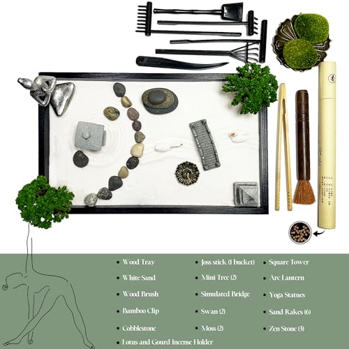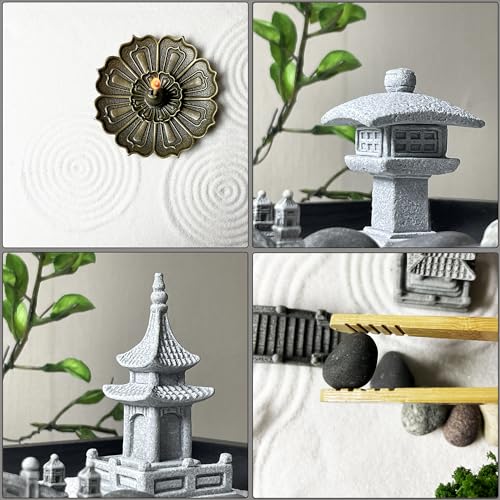 Specification: Mini Zen Garden Kit for Office Desk and Home Table, Meditation Tool, Gift for Wife, Mother, Girl Friend, Grandmother – Include Artificial Tree, Buddha, Pagoda, Lamp Niche… (Zen Garden-1)