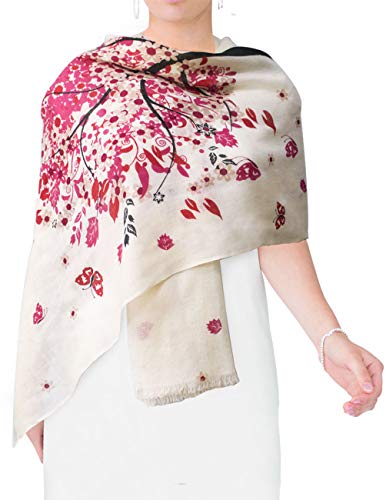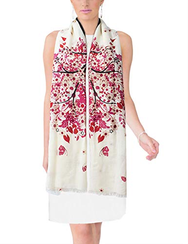 Show off you style with this lovely floral design scarf shawl. This top quality light weight shawl scarf easily creates a chic and stylish look all year round. This versatile scarf is thin as a single layer shawl but folding it adds thickness as a scarf. Because It’s thin it may be worn in the spring and fall when It’s cool out and even throughout the summer in over air condition places. As a result of the width of the scarf it may be folded several times to be worn as a warm scarf in winter without being bulky. It is a perfect accessory for keeping away the chill and completing any outfit and suited for both formal and casual wear. It also makes a perfect holiday gift in your friends and family members. This scarf features ink painting watercolor flowers design and measures 26 inches wide and 71 inches long (79 inches with fringe). It’s made of 100% Merino wool, fine wool with an average diameter below 25 micron very similar to cashmere which has an average diameter below 19 micron. Dry clean or hand wash.