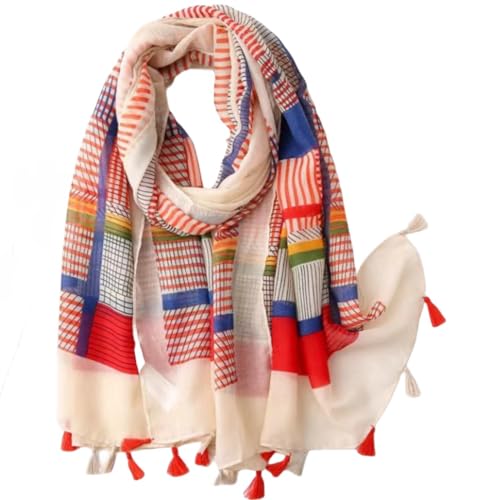 Travel Boho Scarf for Women Casual Lightweight Pashmina Scarves Fashion Multicolor Shawl Wraps with Fringed Beads