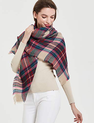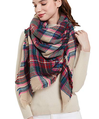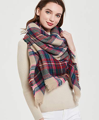 Wander Agio Womens Warm Blanket Scarf Square Winter Shawls Large Infinity Scarves Stripe Plaid Scarf