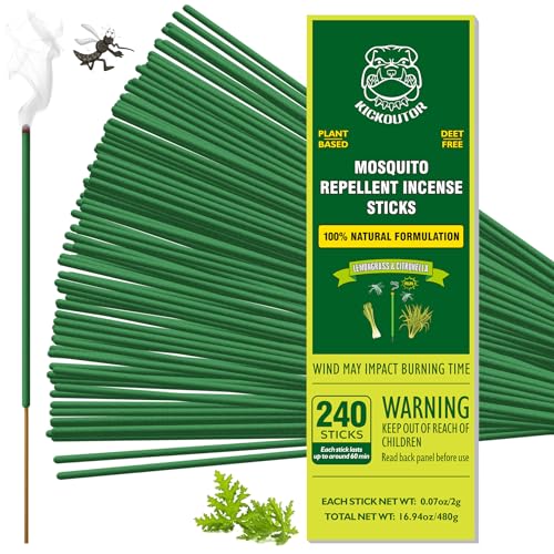 EFFECTIVE MOSQUITO REPELLENT:KICKOUTOR mosquitoes repellent uses a combination of plant-based repellent oils, which herbal ingredients provide a safe insect repellent effect. Smoke emitted by mosquito sticks will deter buzzing mosquitoes and other bugs itchy bites. Giving you a relaxing atmosphere and keeping you and your family safe from mosquito bites