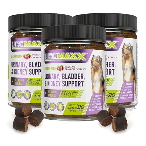 Dog Urinary Tract Infection Treatment, Bladder & Kidney Support for Dogs, Powerful Pet Care, Natural Soft Chews with Cranberry & Glucosamine, Made in The USA, Chicken Flavor, 90 Count, 3 Pack