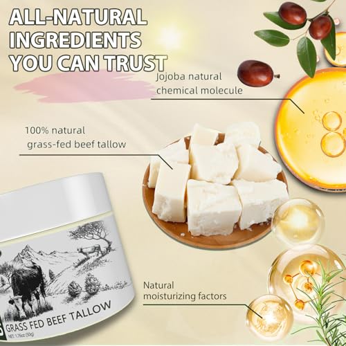 Natural & Nourishing Moisturizer: Our premium beef tallow for skin is a 100% natural and deeply nourishing moisturizer derived from grass-fed beef, designed to hydrate and rejuvenate your skin without any harsh chemicals or additives.