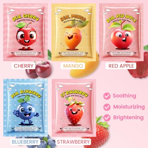 Specification: Kaely 10 Pack Fruit Face Masks for Kids, Spa Party Facial Mask Skincare Set, Sheet Masks Skin Care, Moisturize Brighten Soothe for All Skin Types, Christmas Birthday Gifts for Women Men Girls, 02