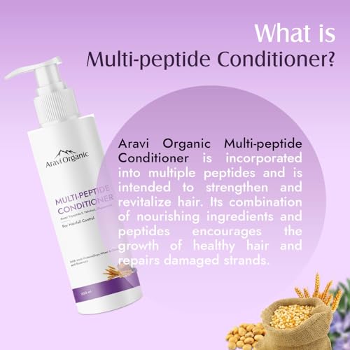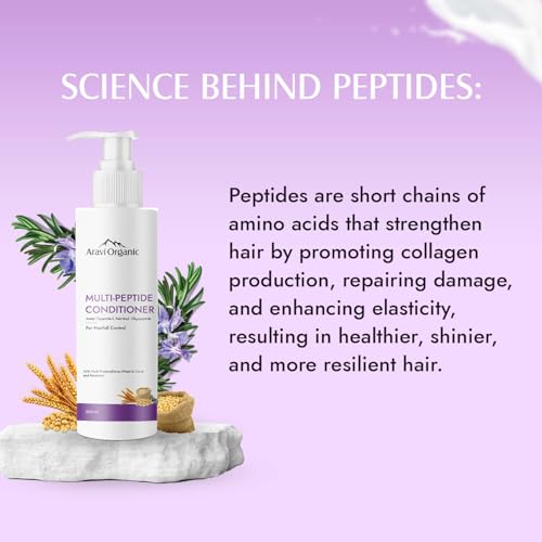 POWERFUL MULTI-PEPTIDE COMPLEX: Aravi Organic Multi-Peptide Conditioner is an advanced formula that combines a range of peptides to deeply nourish scalp and fortify hair from within. These peptides help to rebuild hair structure, enhancing its strength and elasticity to reduce breakage and split ends while promoting healthier, fuller hair growth.