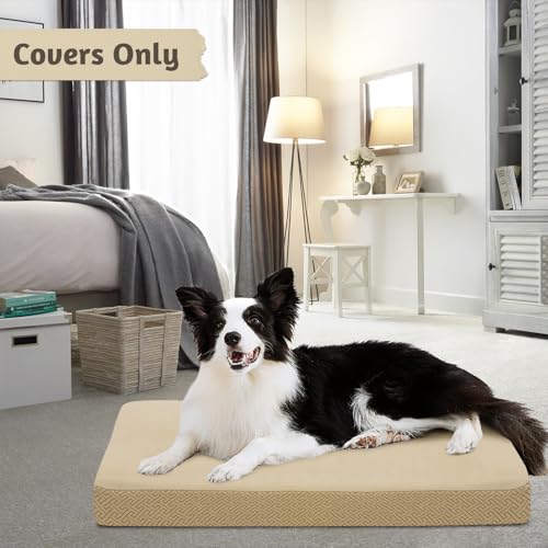 Dog Bed Covers Replacement Washable Dog Bed Waterproof Cover Soft Cover for Dog Cat, Cover Only (Beige, 36x27x6 inches)