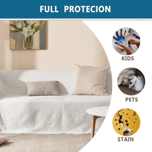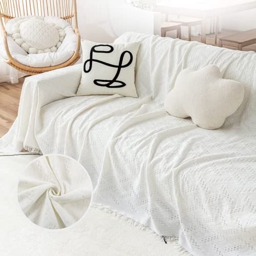 Homcosan Sofa Slipcovers Towel Cover Cotton Knit Geometrical Couch Cover for 2-3 Seat Cushion Couch Furniture Pet Protector Stylish Throws for Sectional Couch(White,71”x118”)