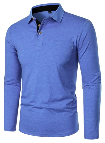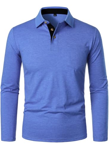 FANARCHER Men’s Casual Polo Shirts Classic Long Sleeve Shirt Solid Color Button T-Shirts Cotton Tees Golf Stylish Tops