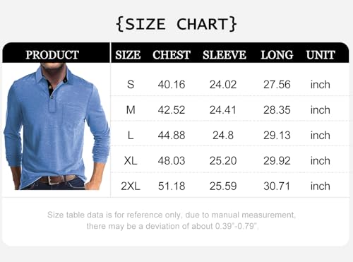 Specification: FANARCHER Men’s Casual Polo Shirts Classic Long Sleeve Shirt Solid Color Button T-Shirts Cotton Tees Golf Stylish Tops