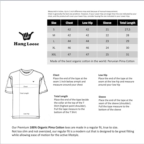 Specification: Hang Loose 100% Organic PIMA Cotton Art T-Shirts – Premium Ultra Soft and Long Lasting tee for Men and Women – Short Sleeve